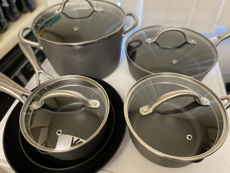 Cuisinart Pro Stainless Steel 12-Piece Cookware set is our top-rated overall. The set features 3-quart and 1.5-quart saucepans as well 8-inch and 10-inch skillets. There’s also an 8-inch and 10-inch open skillet, a 3.5 quart saute pan, and an 8-quart stockpot.